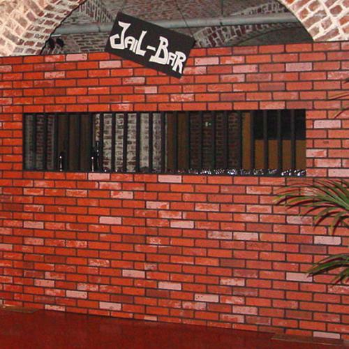 2 Murs de prison en brique rouge 400 x 200 avec fenêtre à barreaux élastiques de 50 x 300 cm à 120 cm de haut (Jail bars) :