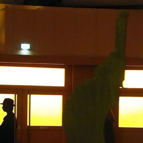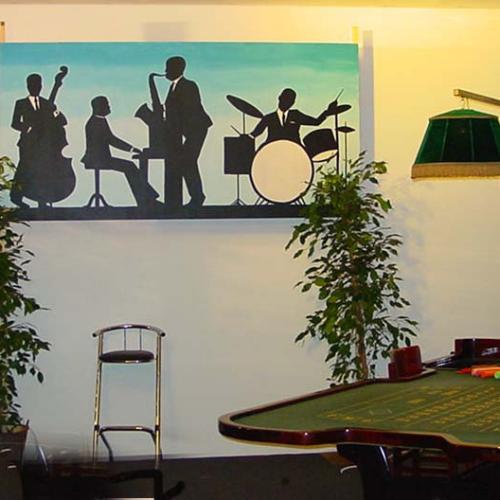 20 Silhouettes noires de gangsters armés sur panneau bois :