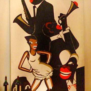 3 Illustrations de revues nègre : Panneaux peints de+/-1 x 2 m :