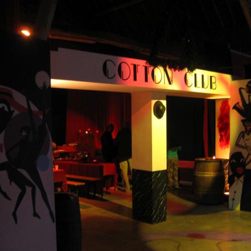 3 Colonnes bas en marbre noir dessus blanc et un fronton blanc avec inscription "Cotton Club" (560 l x264 ht x 86 p)