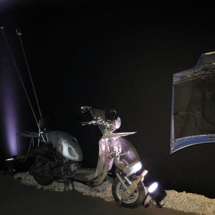 Diverses pièces de moteur, engrenages, pièces de carrosserie, grosses chaînes et cordes, accessoires, masques,... :