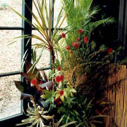14 Palmiers 1 m ht. avec tronc coco et plumes d'autruches colorées :