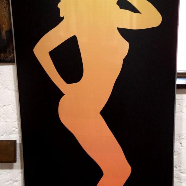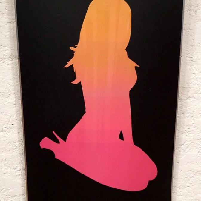 5 Panneaux 110 x 200 légèrement bombés de silhouettes de danseuses nues en dégradés multicolores sur vinyl :