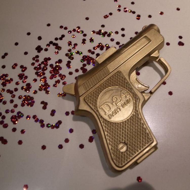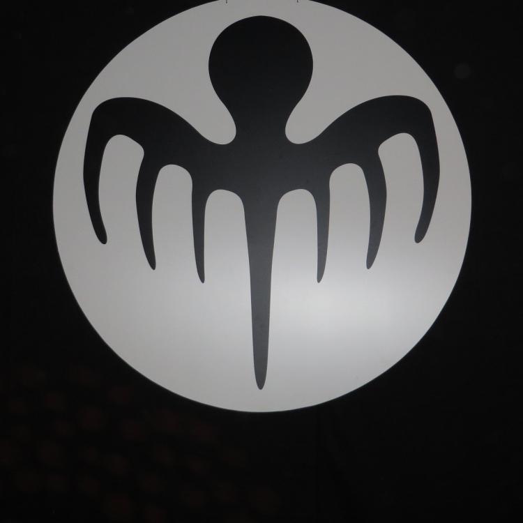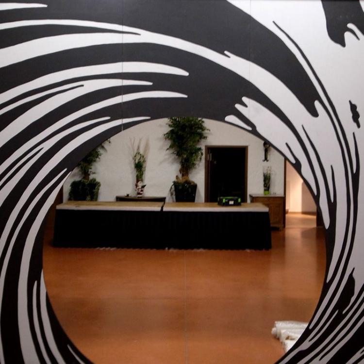 Portique d'entrée R/V sur panneau peint en intérieur de canon de revolver. Dim. : 3 m ht x 4 m lge; passage en cercle rabaissé
