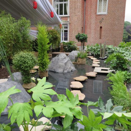 Jardin aquatique : Avec pas japonais, plantes et aquatique, rochers,