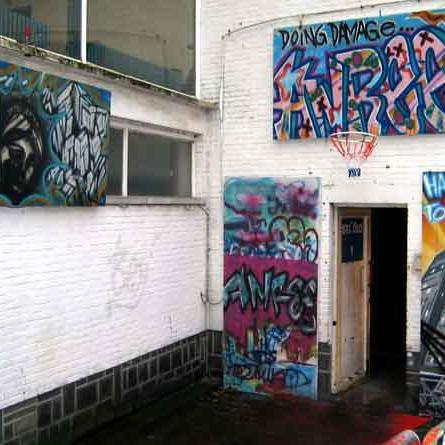 5 Panneaux de bois graffittés de tags sur N-Y :