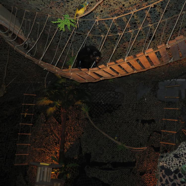 Ponts de singe en cordes; bois ou bambou (10 m, 6 m, 4 m).