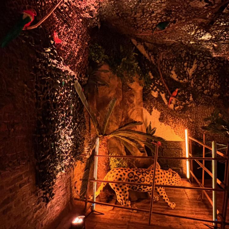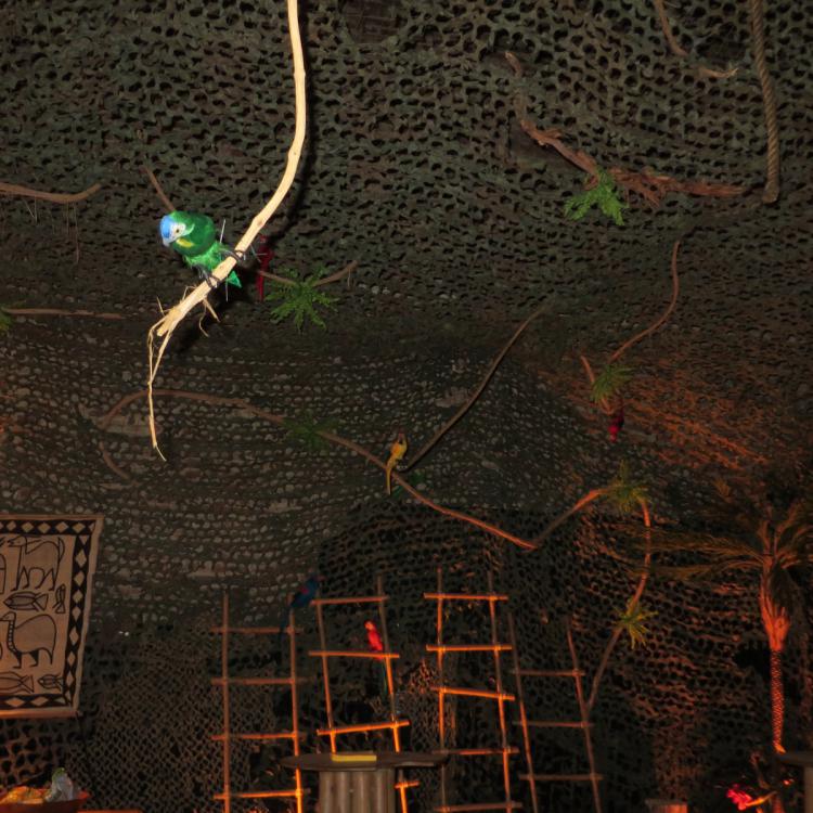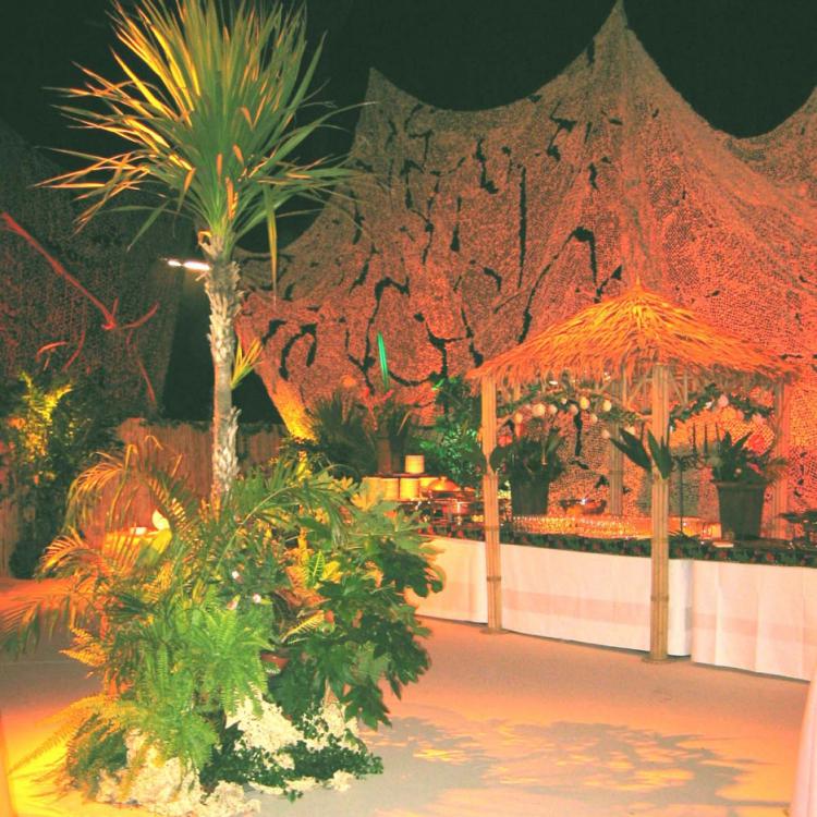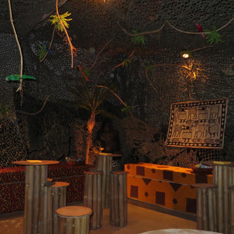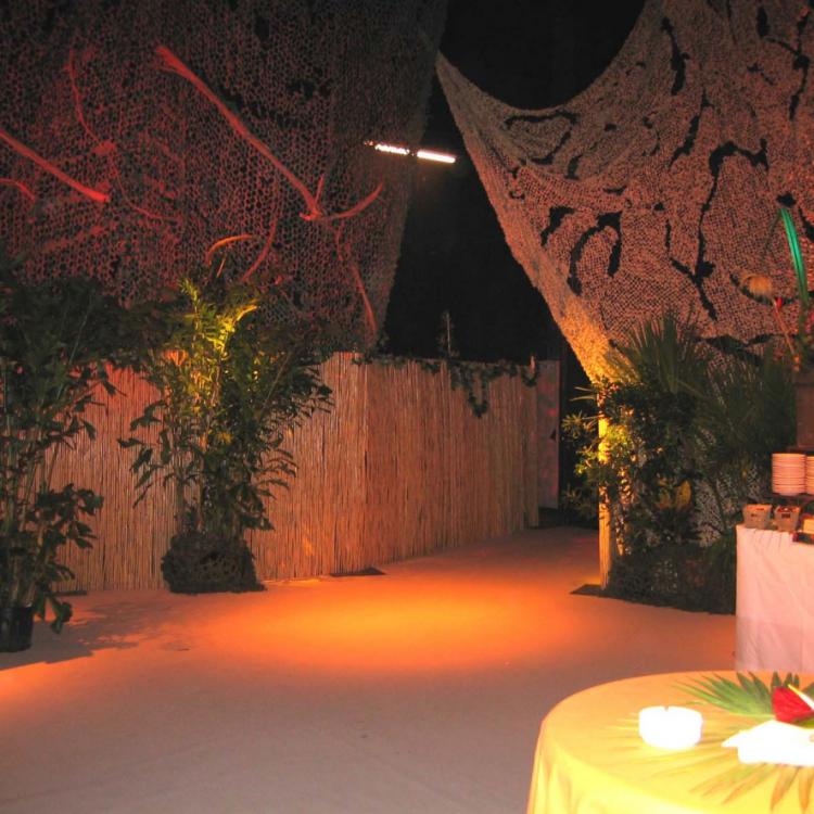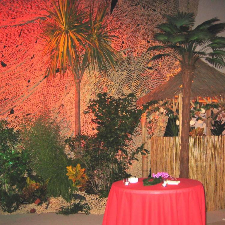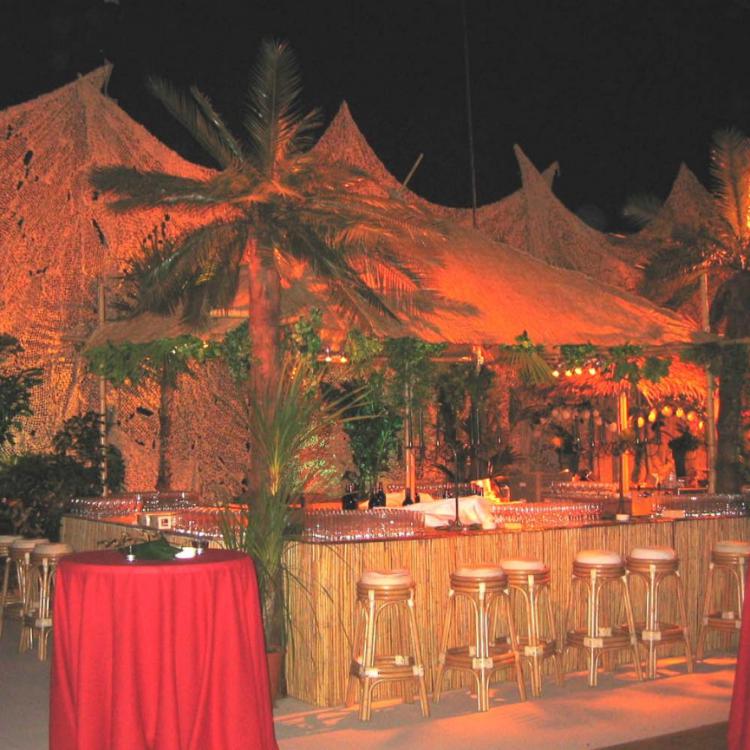 Bar tropical en bambou, cannisse et paillon 300 x 47 avec toit à 220 ht, tablette à 102 cm de haut :