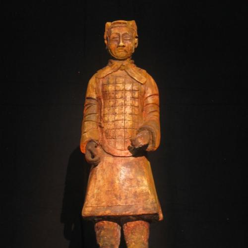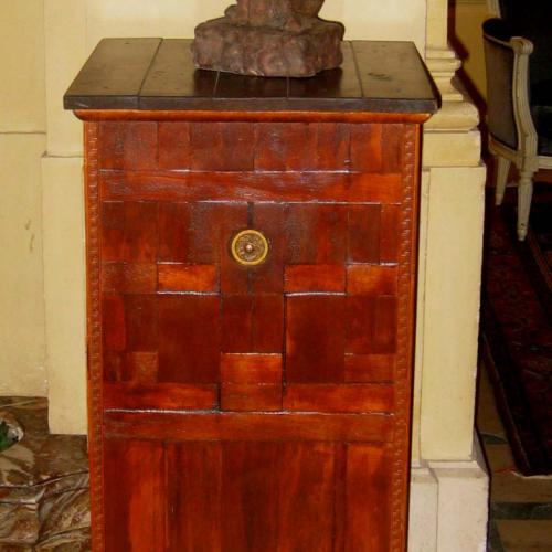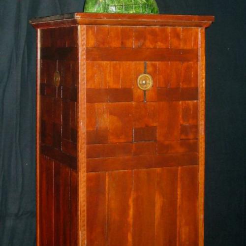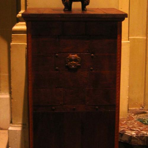 4 Stèles en bois 100 cm avec statue, vase, masque ou gong :