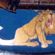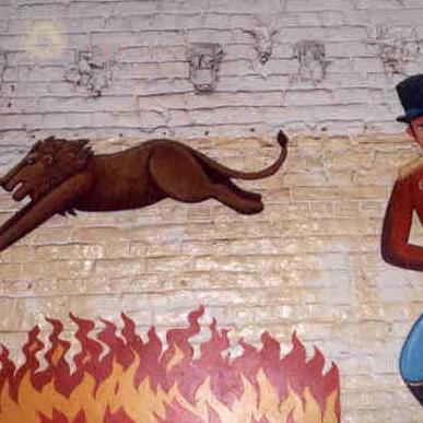 Dompteur* avec cerceau 300 ht avec un lion bondissant.